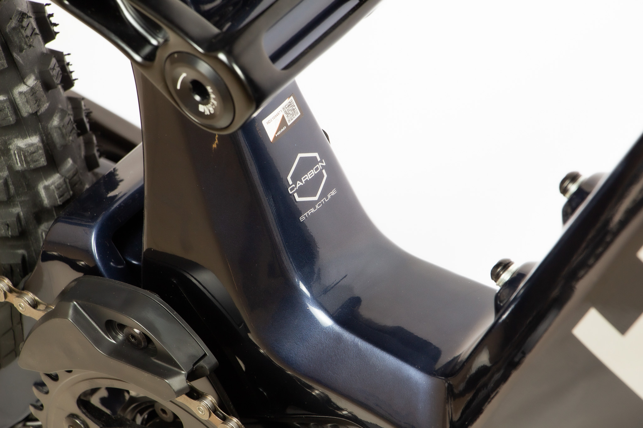 Rám: Full carbon with 150mm travel integrated battery, internal cable routing headset