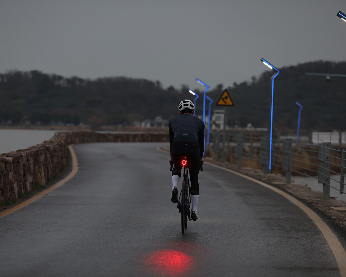 Při připojení k cyklopočítači na kolo zadní světlo upraví jas na základě hodnoty snímání světla z cyklopočítače. Tato funkce je vhodná pokud cyklista vjede do tunelu nebo v tmavším prostředí (hustý les apod). – funkci je nutné povolit v cyklopočítači/aplikaci IGPSPORT APP.