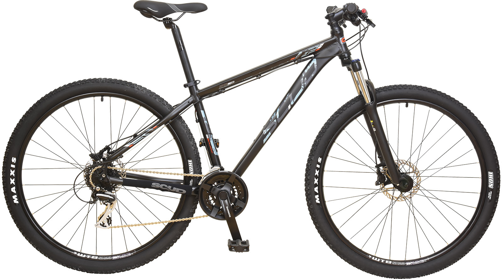 Horské 29palcové kolo SCUD Parus s 24 rychlostmi, hydraulickými kotoučovými brzdami a komponenty Shimano Altus/Acera.