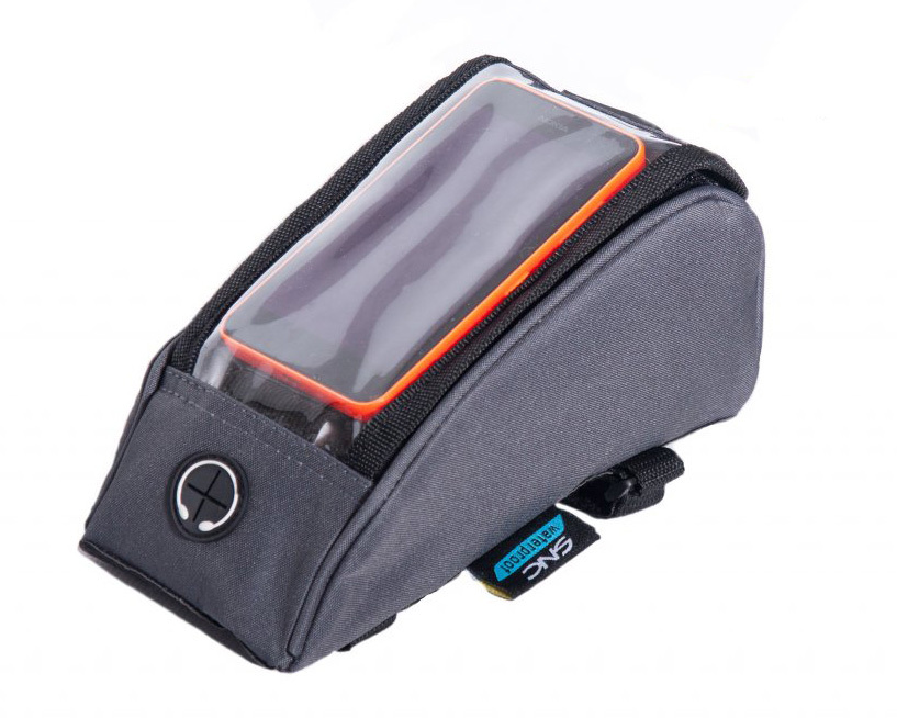 Brašna na přední část rámu pro smartphone, powerbanku apod. Praktická objemná brašna na veškeré nezbytnosti, které je třeba mít stále na očích (mobilní telefon, kompaktní fotoaparát, peněženka, klíče, nářadí).